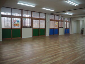 1階保育室前のすのこはウッドデッキになりました。2階のすのこの工事は春休みに行う予定です。