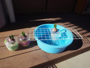 ヒヤシンスの成長も子ども達と一緒に根っこの長さを観察したり、2学期に育て始めた植物の成長を感じることができました。